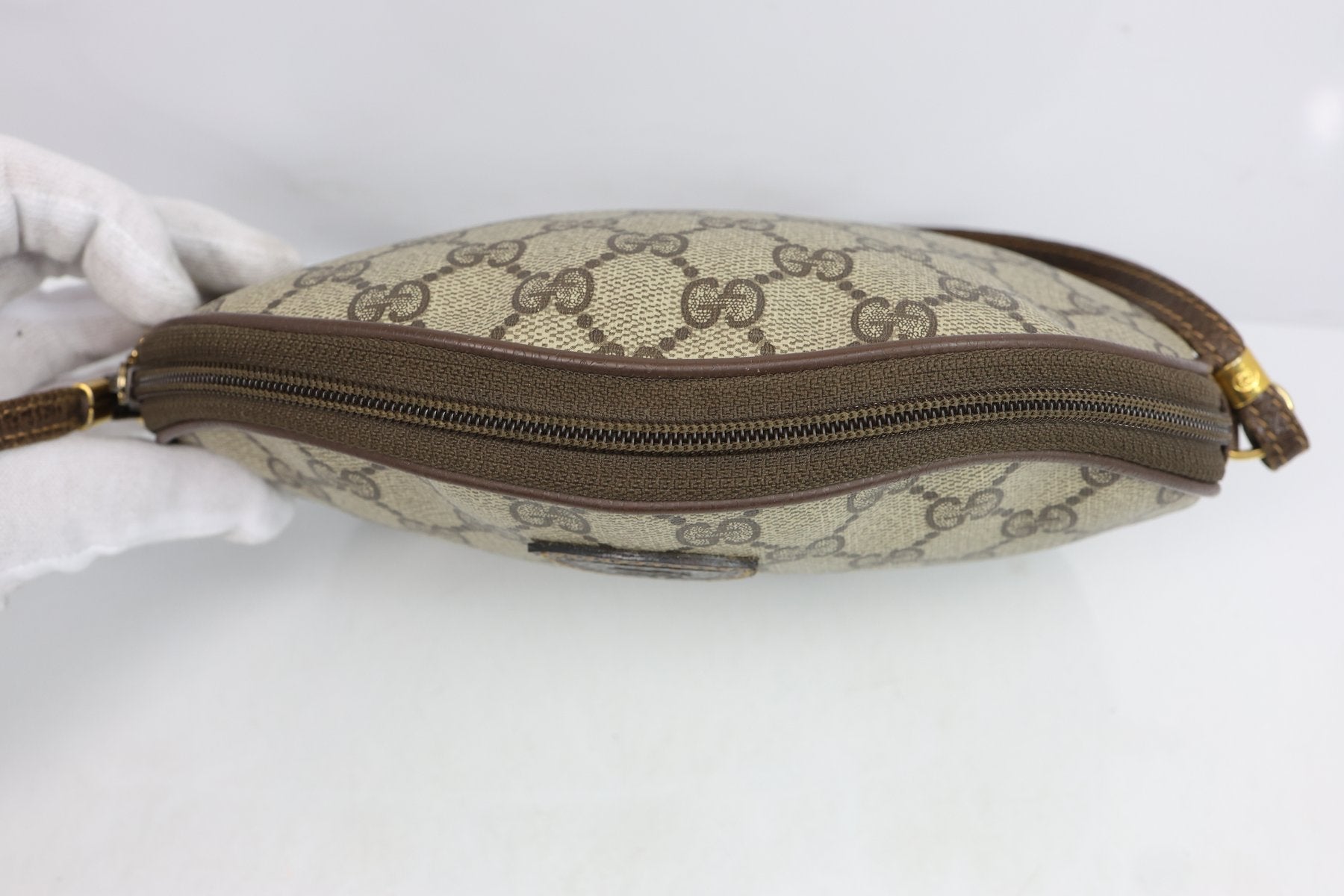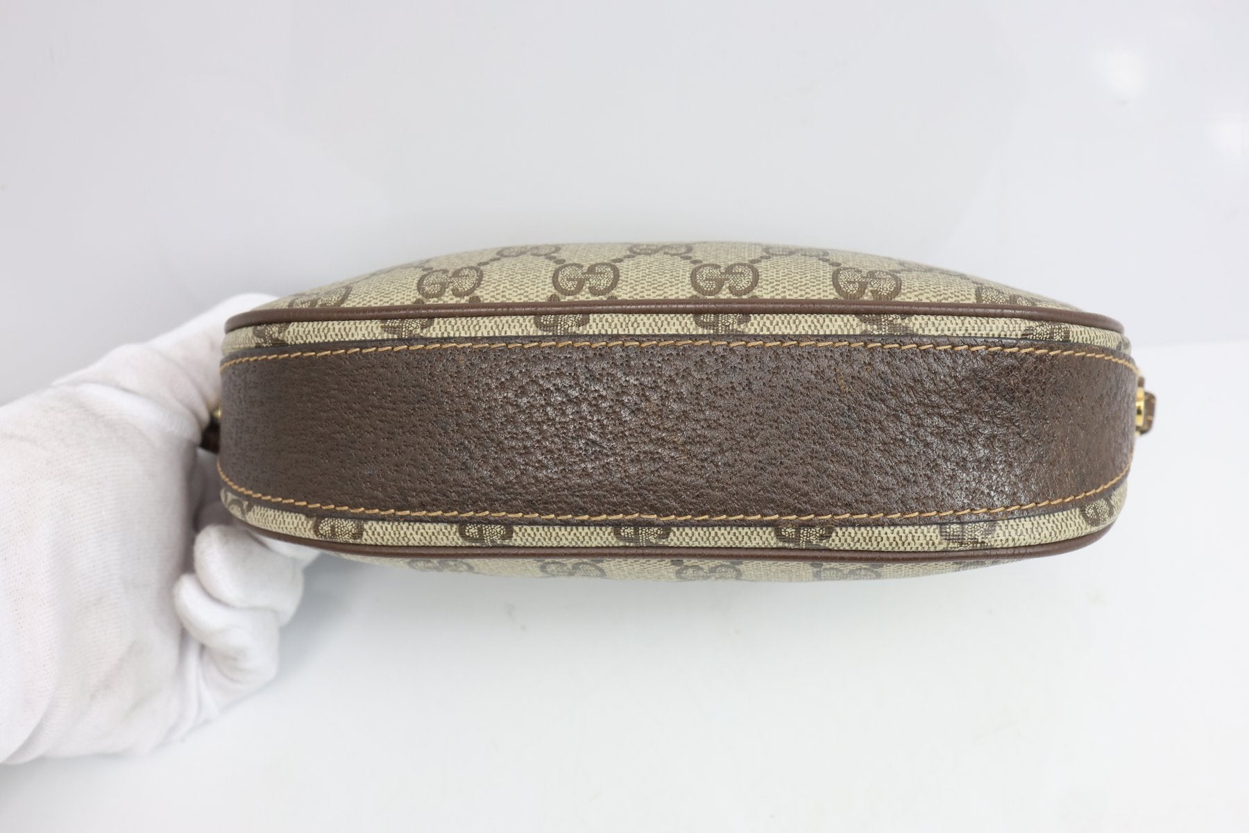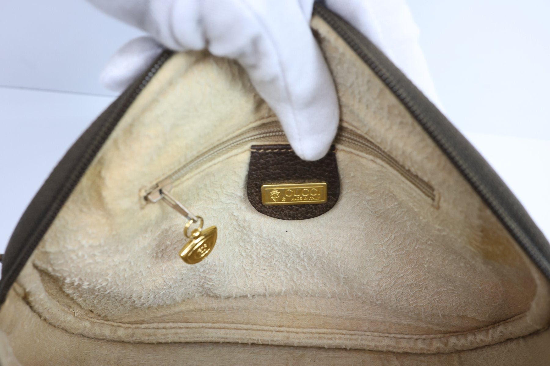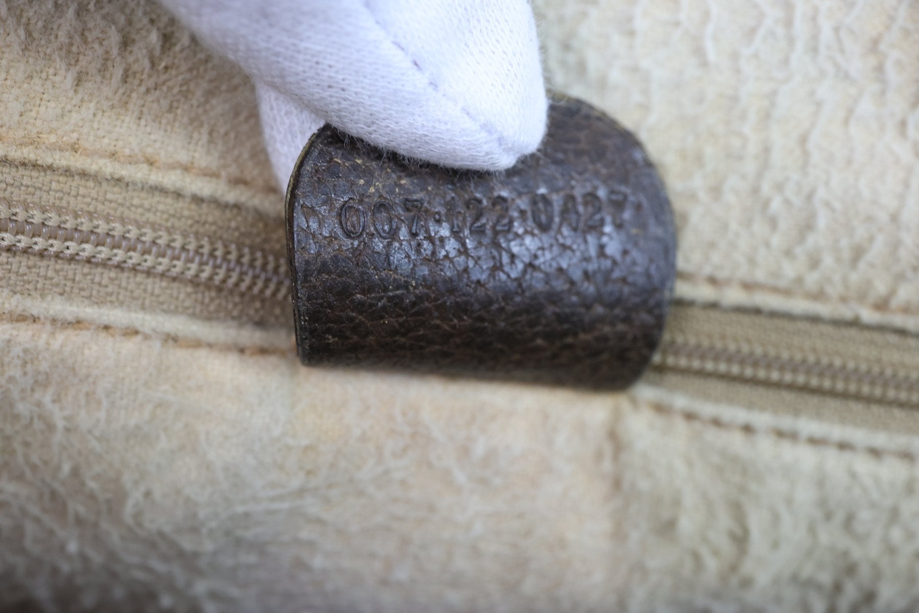 Raffinata borsa retrò molto alla moda e facile da abbinare, con un corpo in tela PVC color beige e finiture in pelle marrone.