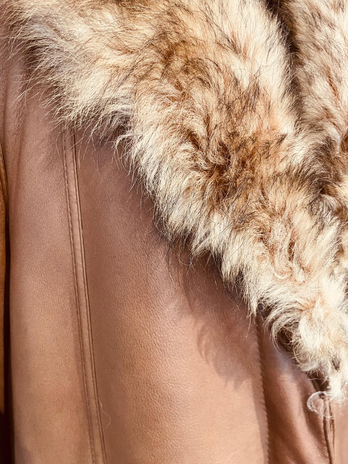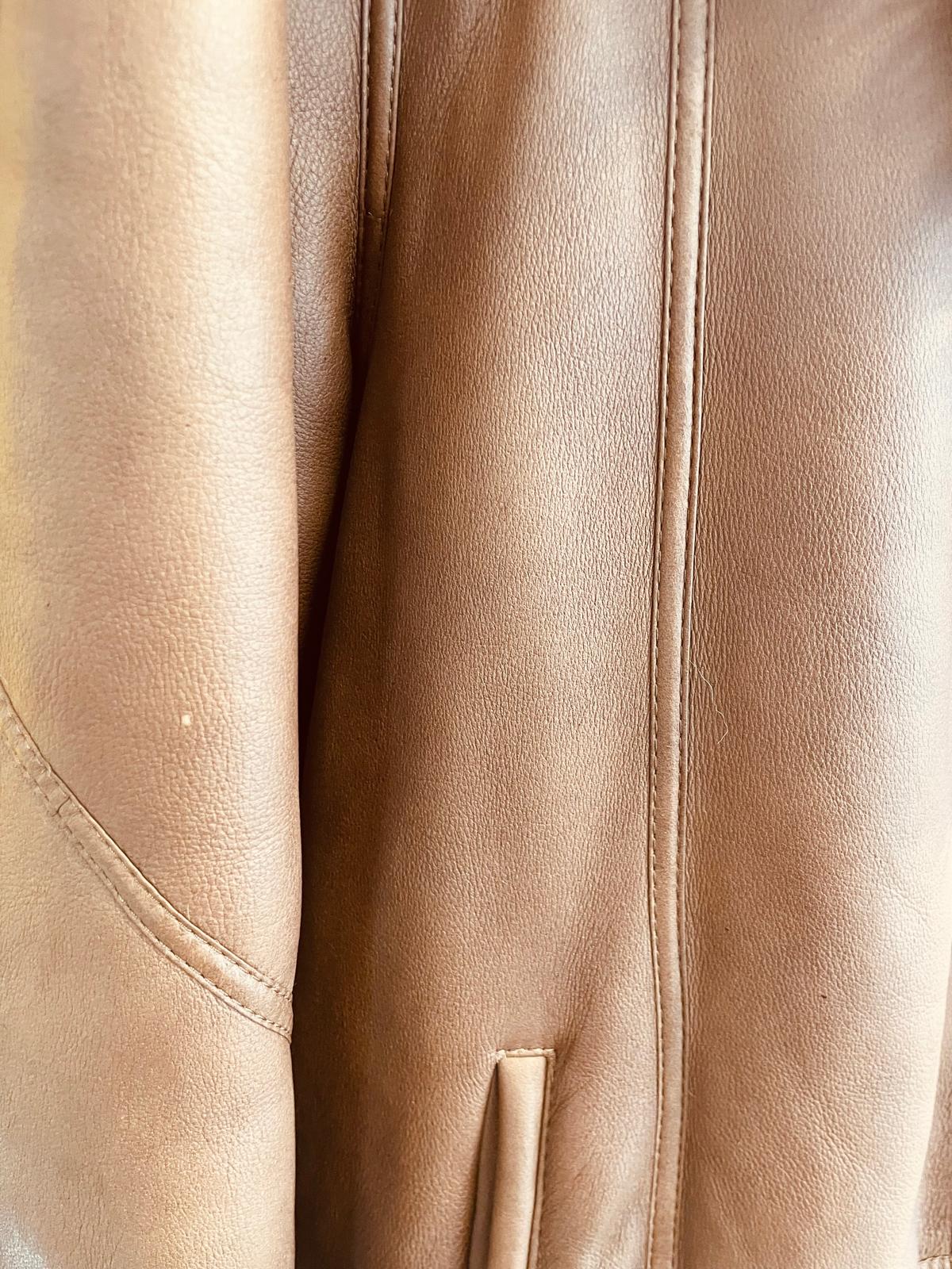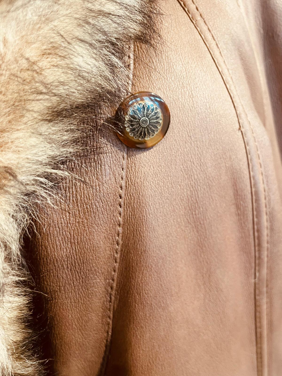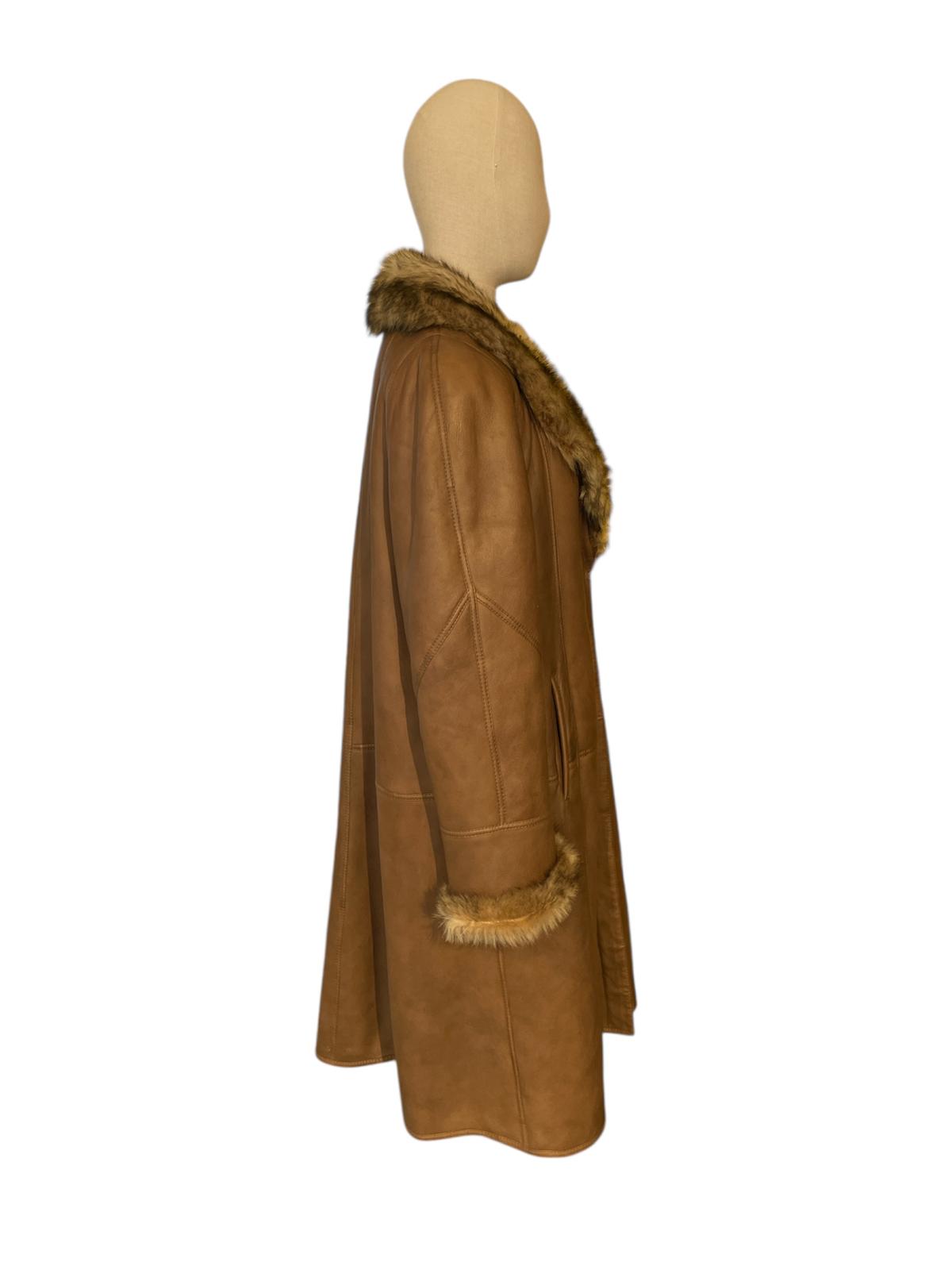 Elegante montone in pelle con pelliccia sintetica.
