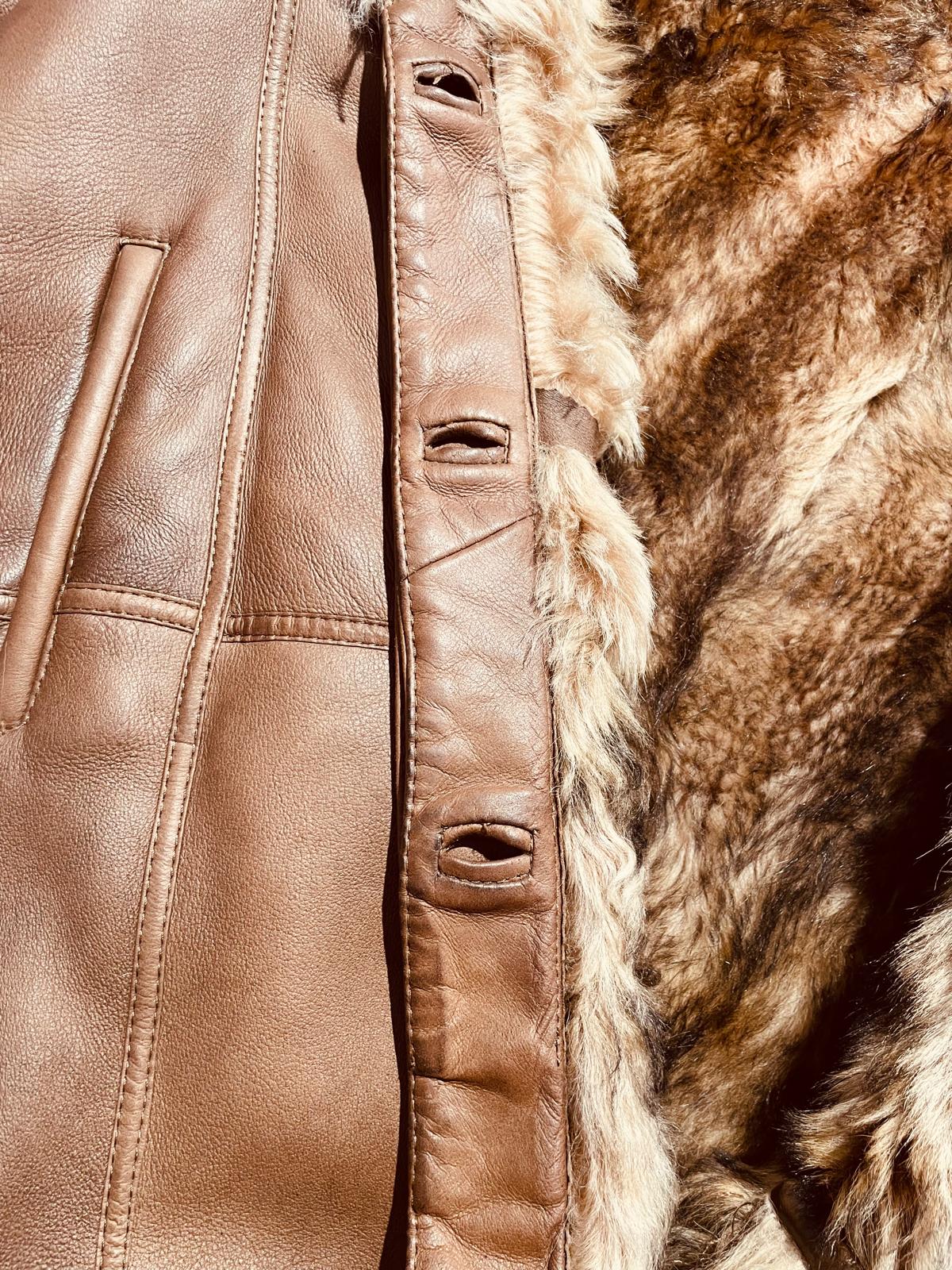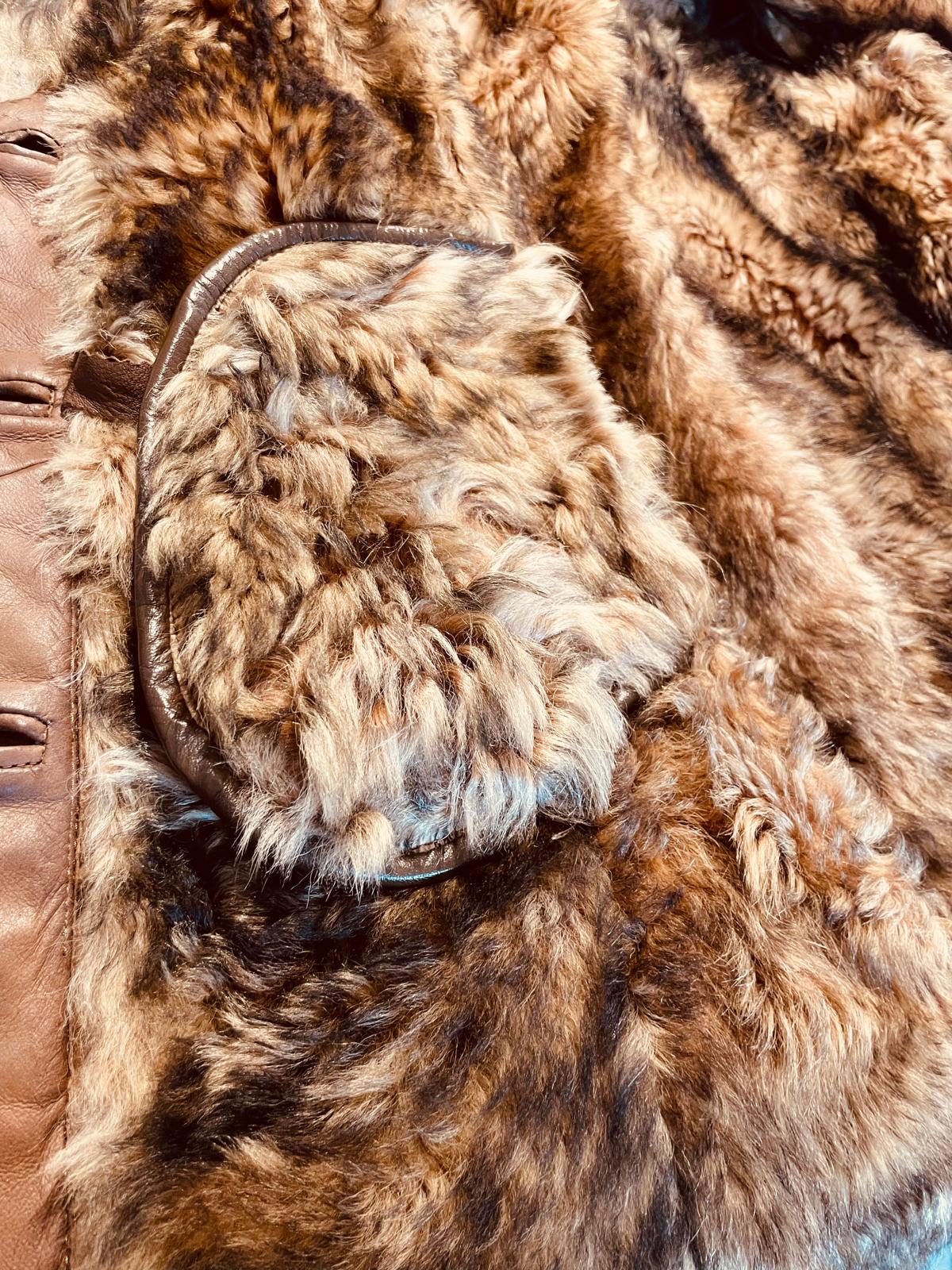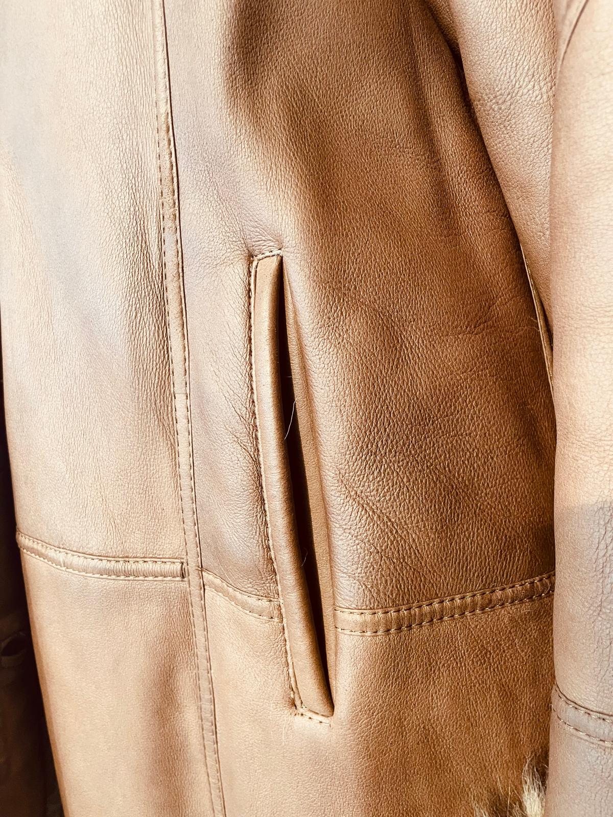 Elegante montone in pelle con pelliccia sintetica.