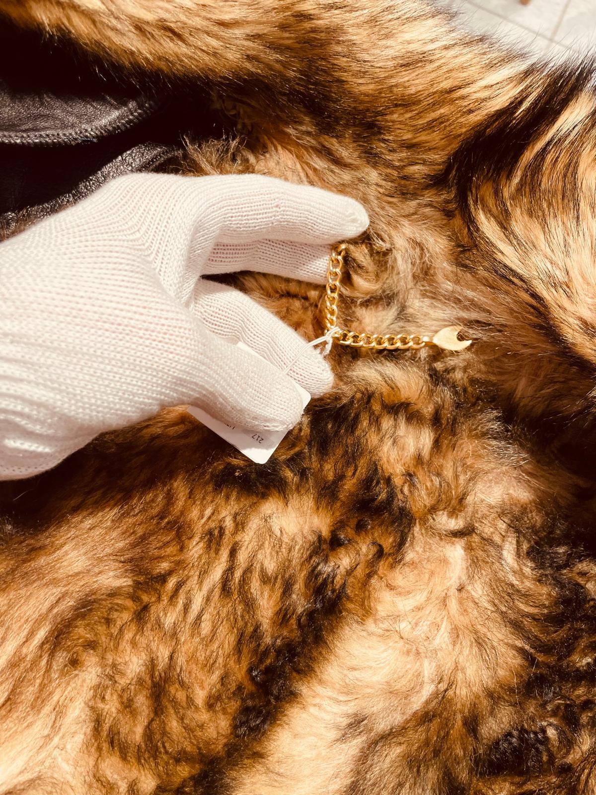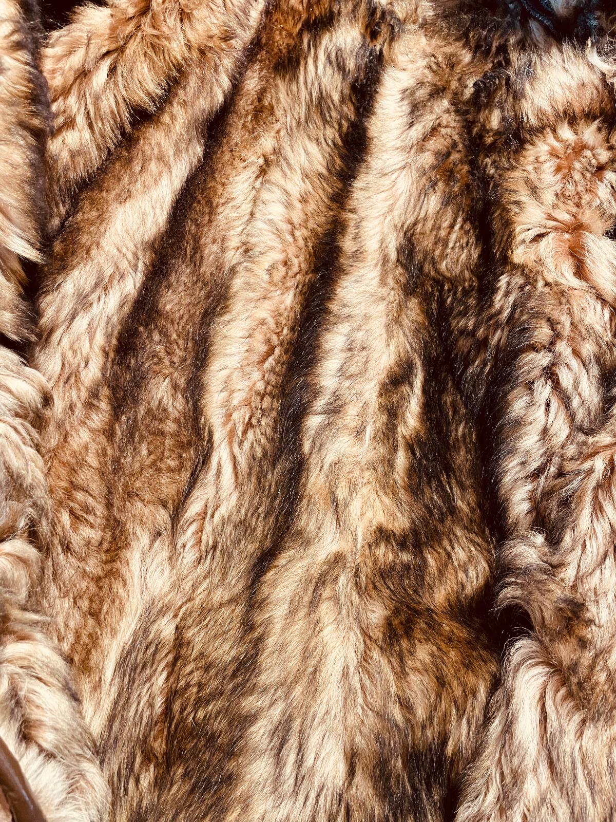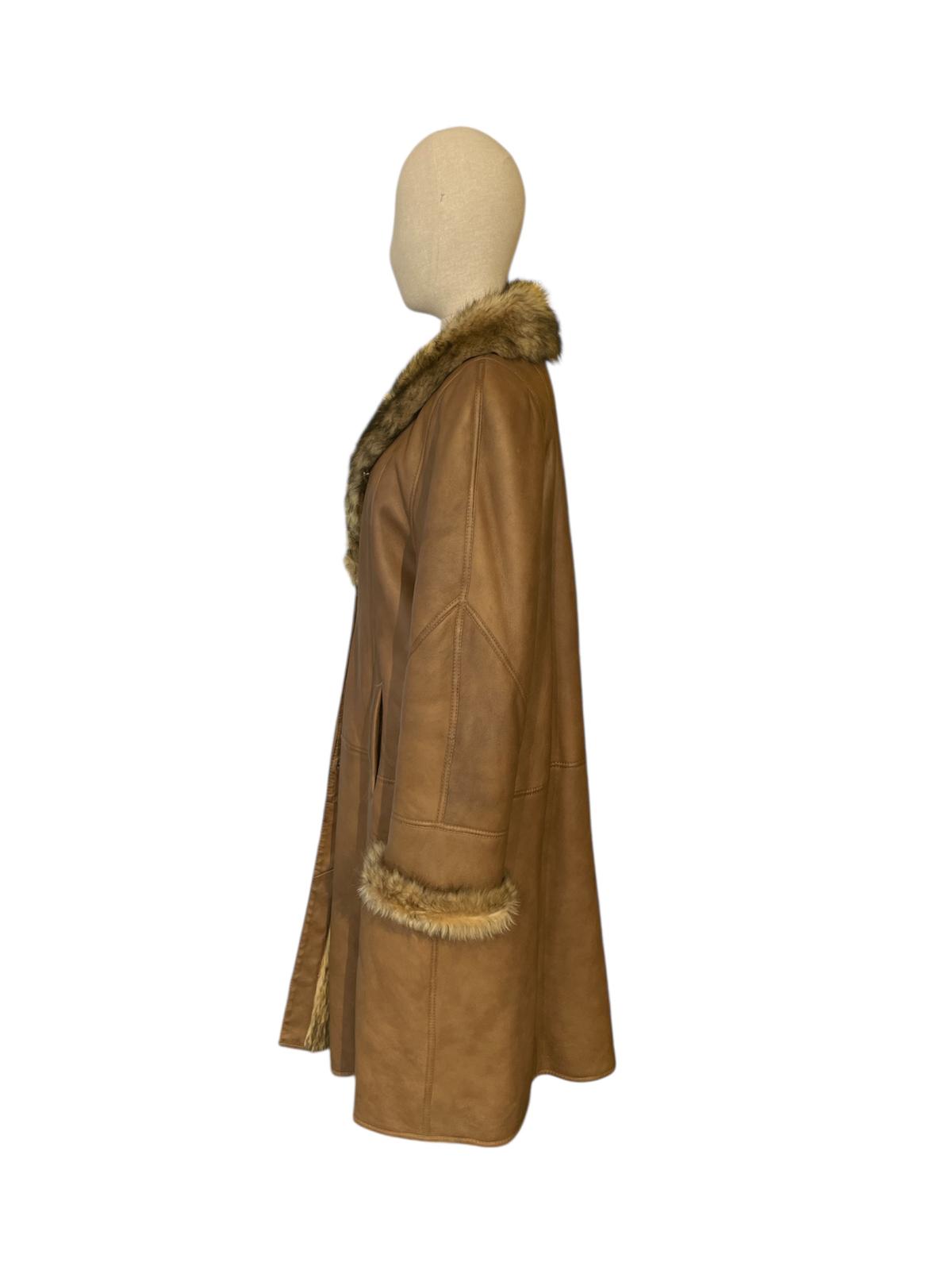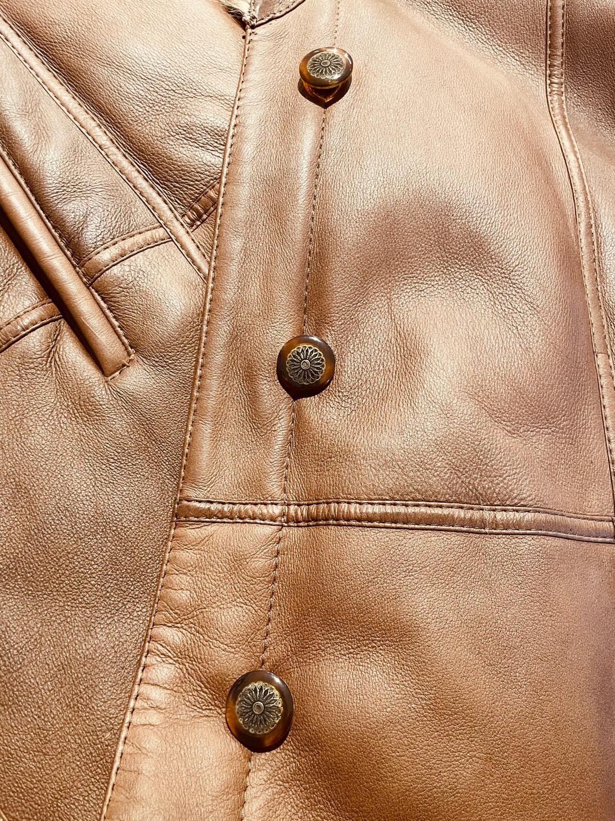 Elegante montone in pelle con pelliccia sintetica.
