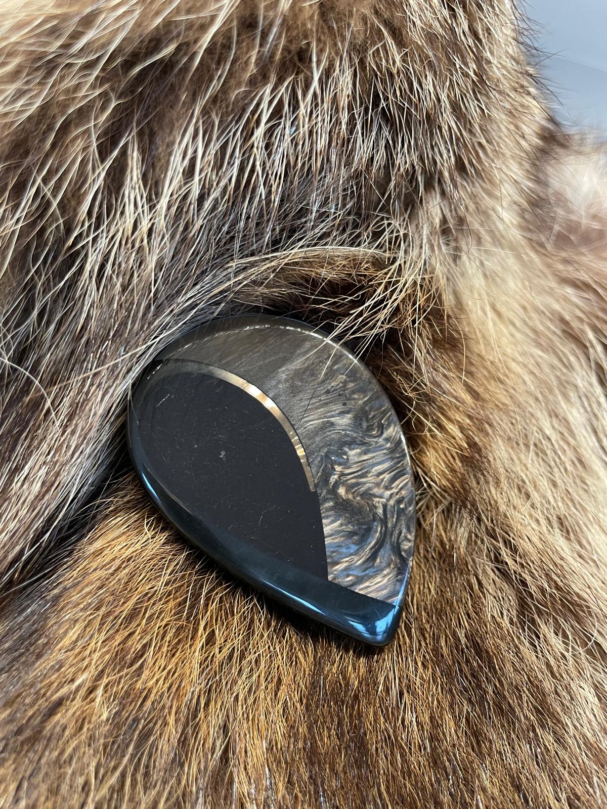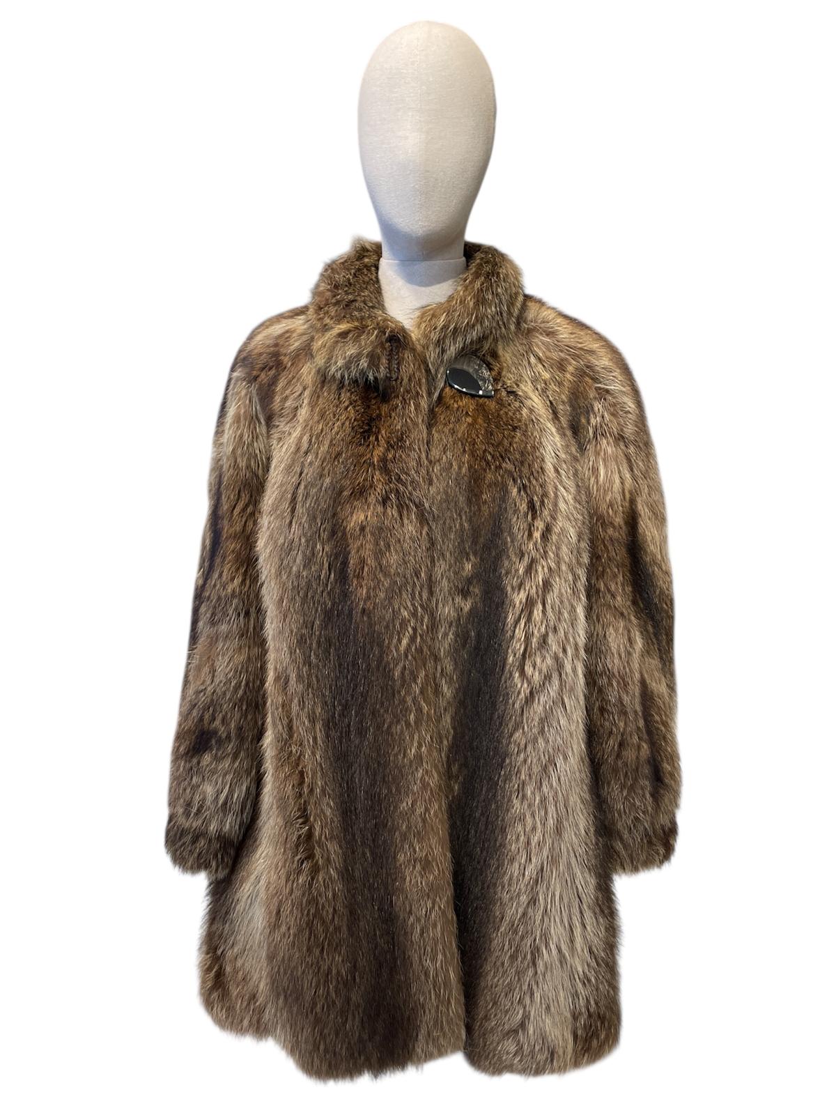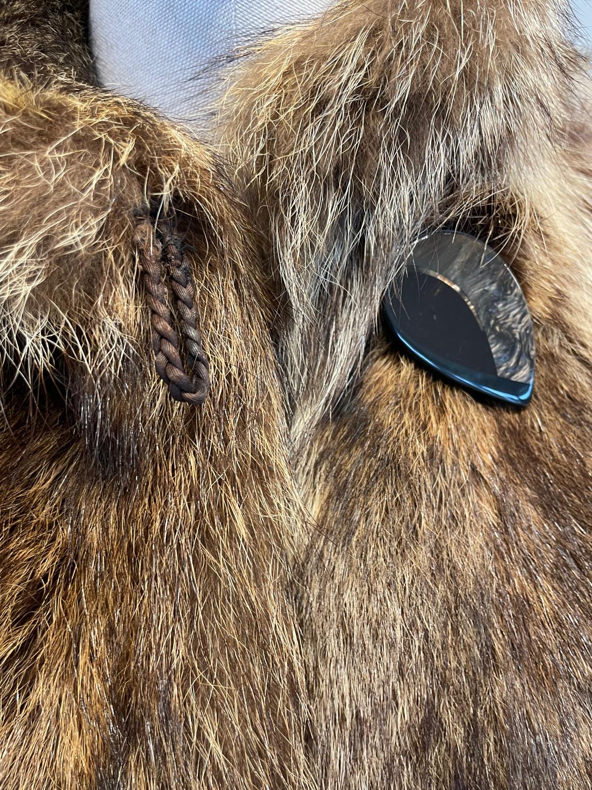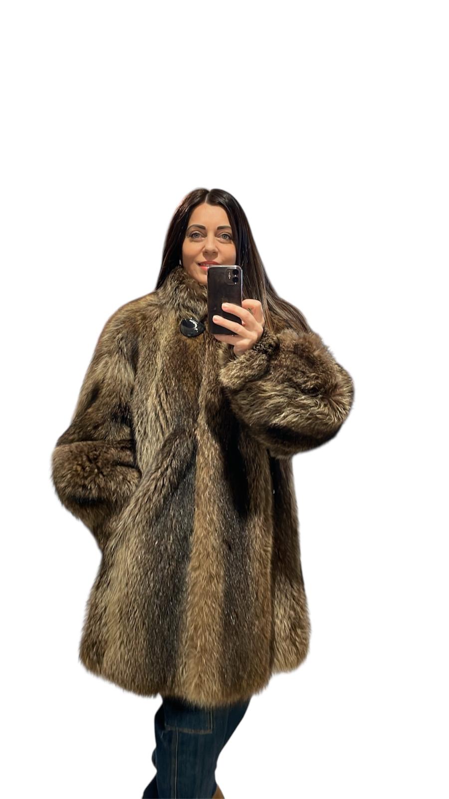 Pelliccia in marmotta modello over con bottoni in madreperla.